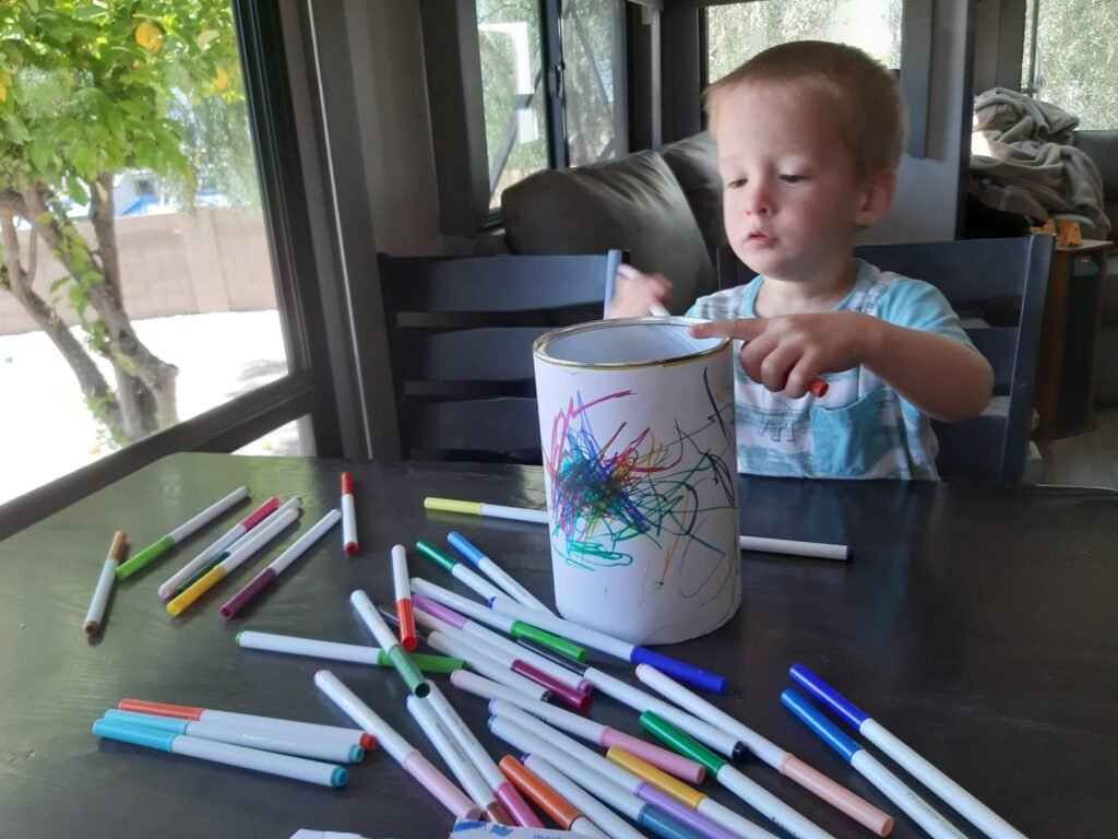 Michael besuchte zwei Morgen in der Woche eine Art Spielgruppe (heisst hier “Pre-K” Pre-Kindergarten). So kann er Kontakte knuepfen und die Sprache hoeren. Insbesondere jetzt wo man nicht einmal mehr auf einen Spielplatz gehen kann, um andere Kinder zu treffen, ist das fast die einzige Moeglichkeit fuer ihn. Nach kurzer Zeit hat er sich dort gut eingelebt und geht sehr gerne. Hier sind ein paar Bilder: