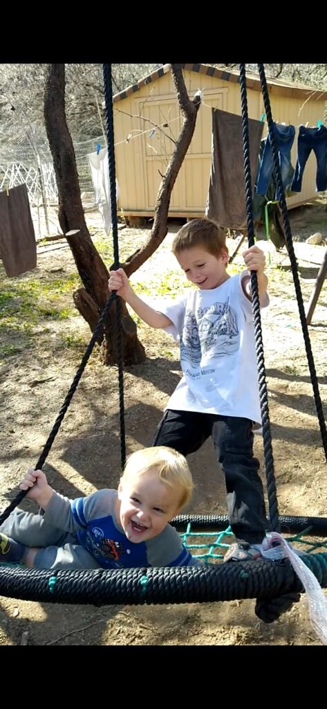 Wieder ist ein Jahr vergangen und ich berichte euch von unserem Familienalltag im fernen Westen. Kurzfassung Stand Mai 2023: Michael ist nun 5.5 Jahre alt und hat die Preschool (kleiner Kindergarten) abgeschlossen, Jesse (2 Jahre alt) ist mittlerweile flink und klettert gerne, auch beginnt er immer mehr zu sprechen. Auf unserem Grundstück hat es sich mittlerweile zu einer kleinen :”Family-Farm” entwickelt. Zu den Hühnern, Schweinen und Katzen von welchen ich letztes mal bereits berichtet habe, sind noch zwei Hunde und 4 Ziegen dazugekommen. Eine der Ziegen melken wir bereits. Das Haus steht bis und mit 1.Dachschicht, es ist jedoch alles noch im Rohbau und auch die Fenster sind noch offen.